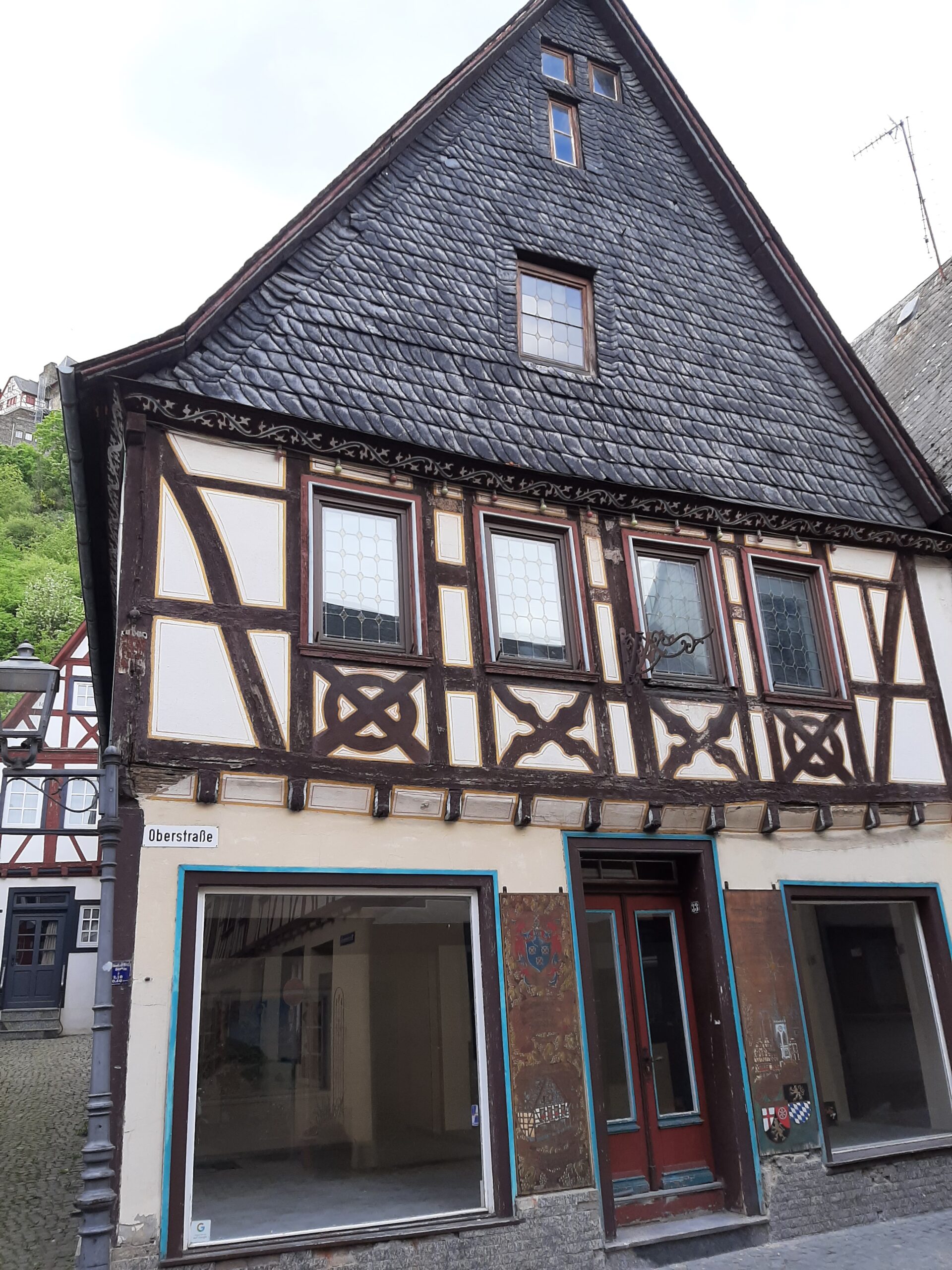 Aktuell in Sanierung befindliches denkmalgeschütztes Wohn- und Geschäftshaus. Bei dem Anwesen handelt es sich um ein Einzelkulturdenkmal mit herausragender städtebaulicher Bedeutung in der Bacharacher Altstadt. Das historische Gebäude stammt aus dem 16. Jahrhundert und erstreckt sich über vier Etagen.